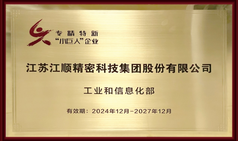 2024 年 11 月 20 日,根据《工业和信息化部关于公布第六批专精特新“小巨人”企业和通过复核的第三批专精特新“小巨人”企业名单的通告》(工信部企业函〔2024〕317)精神,江苏江顺精密科技集团股份有限公司被授予..