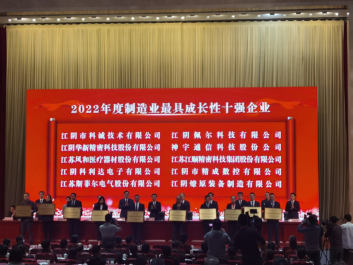 大会宣读了2022年度表彰企业及企业家名单。江顺精密科技集团荣获“2022年度制造业*具成长性十强企业”集团董事长张理罡获评“2022年度优秀总经理”,总经办陈高峰作为企业代表上台接受表彰并领取证书。